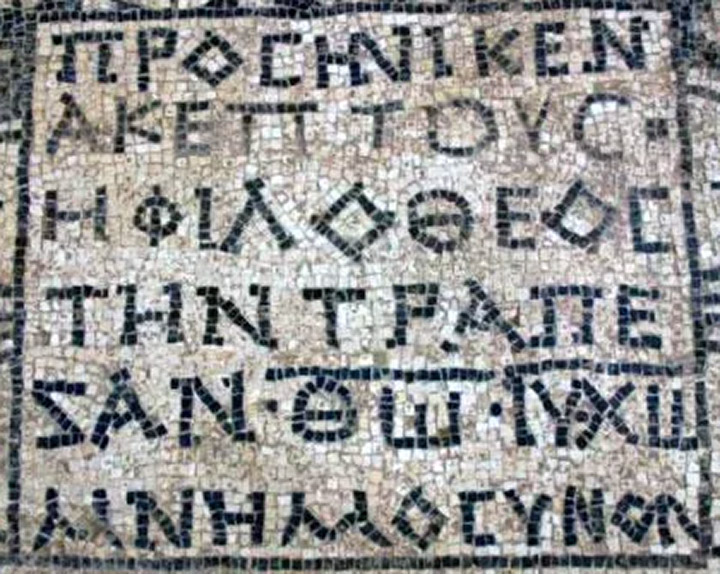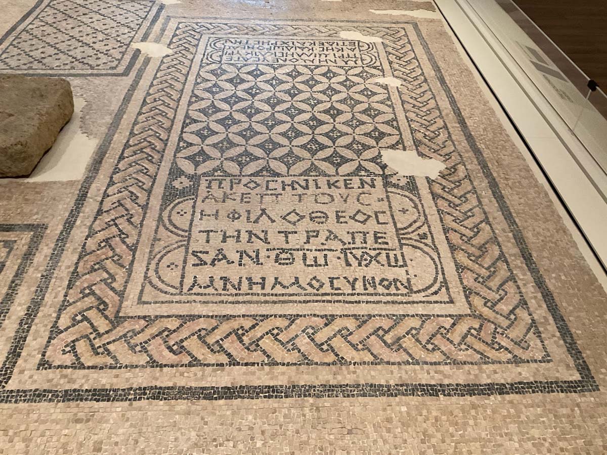 The mosaic features three main Greek inscriptions, documenting a 3rd-century community in Galilee: